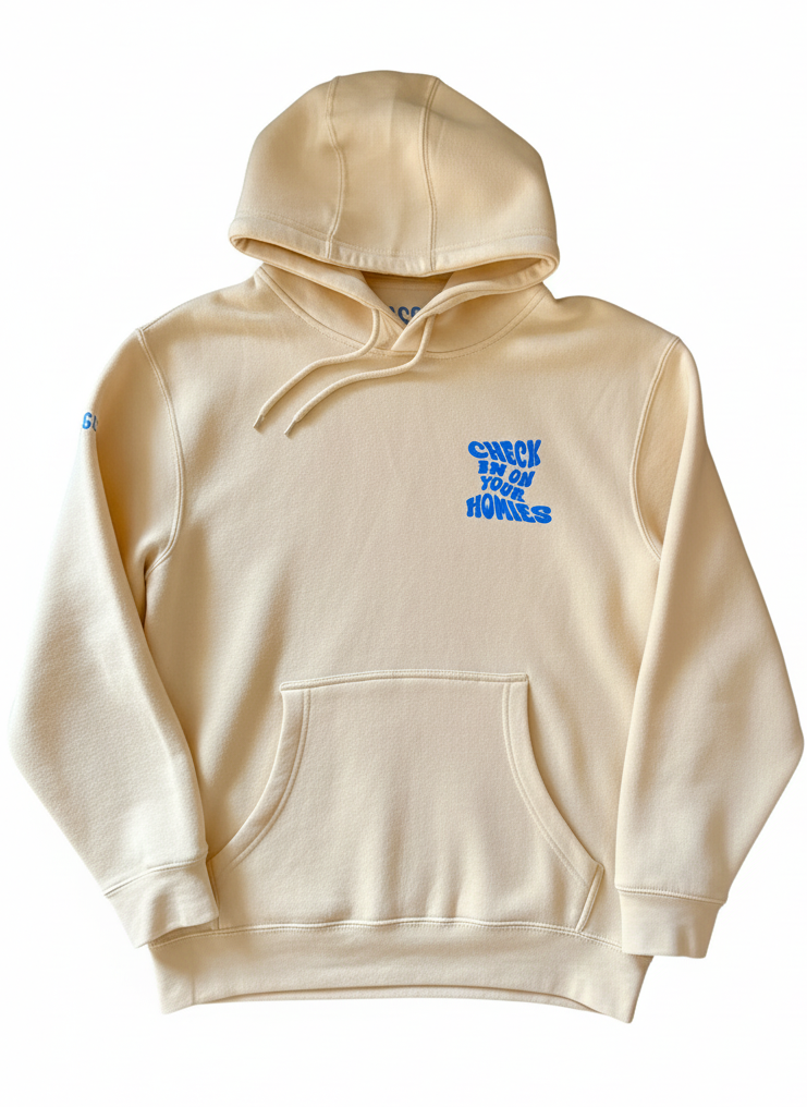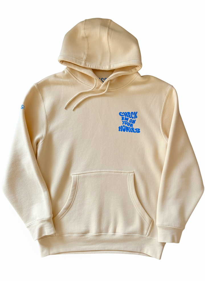 Stay comfortable and stylish with the Check on your Homies hoodies. A gentle reminder to check on those people in your life. It's designed with a relaxed fit that looks great and is all about staying cozy. Perfect for everyday wear, this hoodie features a simple look that makes a powerful statement.